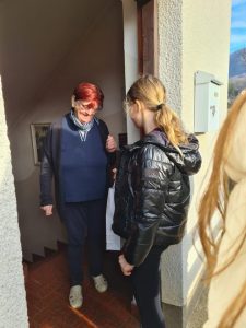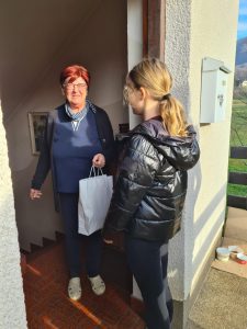 “Ni pravih prazničnih dni brez piškotov. Učenke naše šole, ki sodelujejo v projektu Vsaka zgodba šteje, so spekle piškote za gospo Jožico Ulčnik in ji z obiskom polepšale dan.”